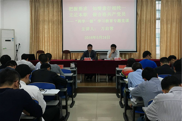 5月24日下午,我院“两学一做”学习教育动员部署会暨专题党课在逸夫楼108室召开。院长徐建波主持会议,院党委书记万启常主讲党课,院党委副书记曾治国宣读了《关于在全院党员中开展“开展学党章党规、学系列讲话,做合格党员”学习教育实施方案》。学院所有党员参加了本次会议。