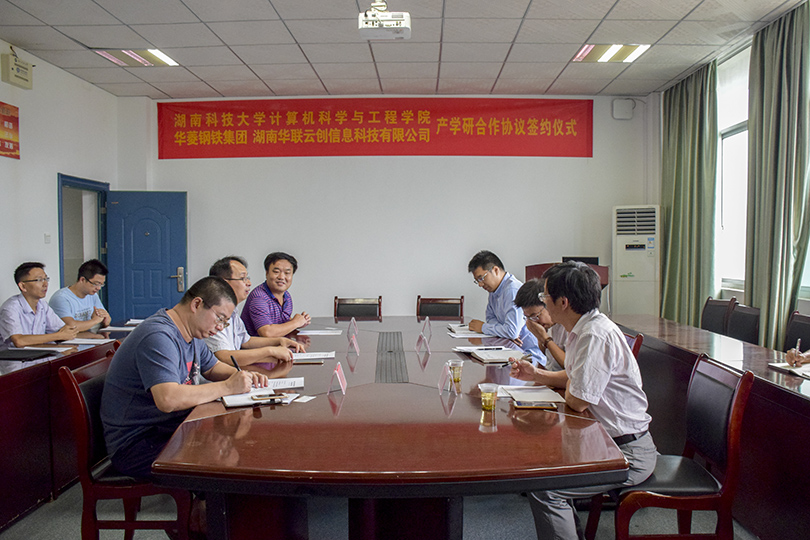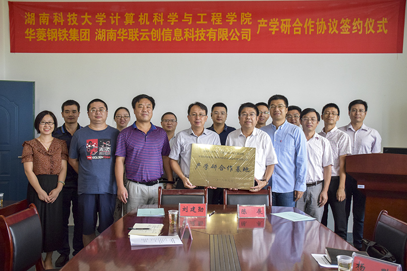 9月18日上午9点,9月18日上午9点,我院与华菱钢铁集团湖南华联云创信息科技有限公司(以下简称华联云创)产学研合作协议签约仪式于逸夫楼210会议室举行。华联云创总经理陈展、项目与研发部部长杨黔、董事与运行总监宁智明,我院院长刘建勋、党委书记刘红阳、副院长周栋及廖璟等部分学院博士出席。仪式由刘红阳主持。